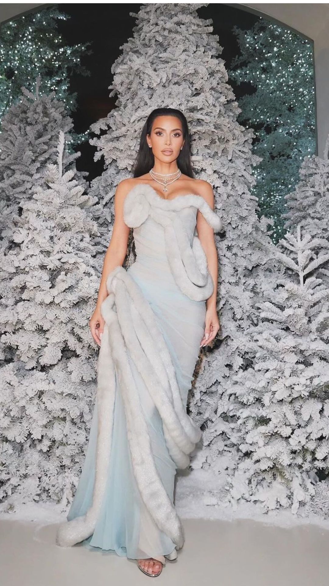 Girl, let me tell you about that fabulous outfit next to the Christmas trees! It's an absolute showstopper! The person in the dress has truly nailed the holiday look. The dress itself is a sight to behold. It's a stunning