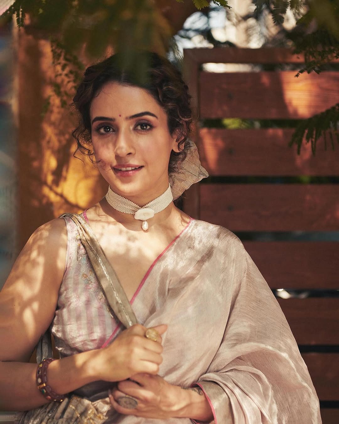 Sanya Malhotra’s love for saris is no secret. Time and again, the actor has championed the six-yard drape with her fresh take on textures and colors. For the promotions of her latest film, Mrs., Malhotra stepped out in a candy-pink linen