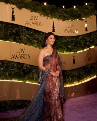 The multi-hued saree worn by Alia Bhatt at the awards ceremony served as a testament to the convergence of innovation and traditional Indian aesthetics. The intricate block-printed designs added a touch of elegance, making the ensemble more sophisticated than ever. This fashion statement not only showcased Alia Bhatt’s impeccable style but also introduced the world to the exquisite work of Indian designers like Abu Jani Sandeep Khosla.