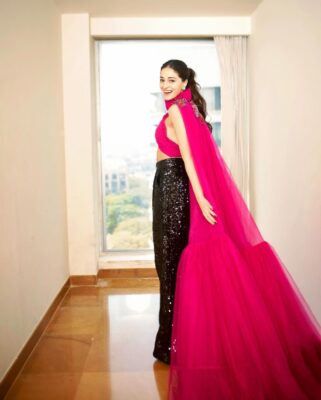 Adding a touch of opulence, a crystal-beaded embellishment adorned the center of the blouse, catching the light with every movement. Complementing this sparkle were the glittery heart-shaped studs that adorned her ears, exuding a subtle yet captivating radiance.Panday’s fashion choices consistently push the boundaries, making her a trailblazer in the industry. With this ensemble, she not only showcased her impeccable style sensibilities but also cemented her status as a fashion icon, inspiring countless admirers to embrace their unique sense of style.