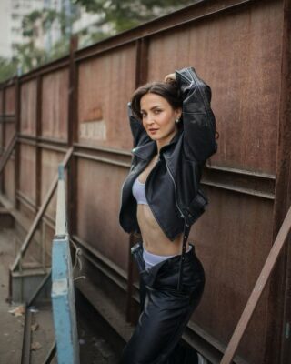 Elli’s choice of attire not only showcased her impeccable fashion sense but also highlighted her enviable physique, with her washboard abs stealing the spotlight. Complementing her ensemble were sleek black leather trousers, strategically left unbuttoned at the front to exude a sense of confident allure. The addition of chic silver studs served as the perfect embellishment, elevating her ensemble to new heights of sophistication.