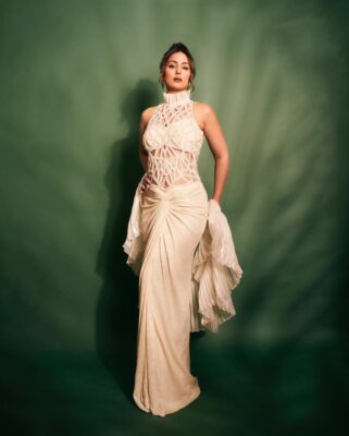 Hina Khan’s fearless style shines in this sophisticated ivory gown.
