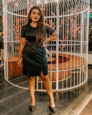 When confused, an LBD is a perfect solution for an instant. Like Gia in this beautiful black dress accompanied by not so high pumps looks immaculate. Flawless hair is another recipe for the crazy squad night.