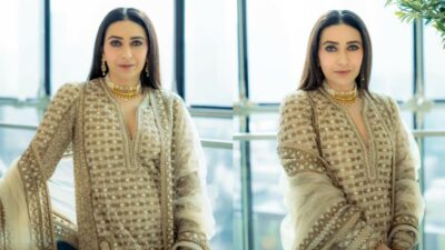 Since the 1990s, Karisma Kapoor has been a style star, prevailing upon us with her perfect design decisions. Her job in the film Dil Toh Pagal Hai established her standing as a genuine design symbol. One clothing particularly stood apart as a turning point in her profession: the staggering gathering she wore in the tune Le Gayi. This dress has stayed with us, a recognition for Karisma’s ever-enduring class. Pushing ahead, Karisma keeps on wowing us with her chic determinations. She as of late gone to an occasion in Dubai, supporting her place as a symbol of style.