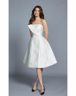 Khushi Kapoor has genuinely raised her style game with regards to sporting whites. The dazzling diva was as of late found in a hypnotizing strapless outfit that left everybody in wonderment. The outfit included a remarkable collar-like solid fold on the chest region, adding a bit of pizazz to her look. What made this outfit considerably more captivating is the expansion of enchanting white buttons as elaborate subtleties, giving it an unconventional bend. To finish the look, the knee-length cut added a ball outfit like completion, changing Khushi into a real style princess.