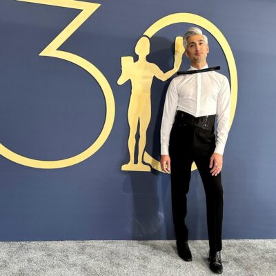 The pièce de résistance of Tan’s look was undoubtedly the dramatically elongated black sculptural bow tie, which accentuated his neckline with unparalleled panache. Statement rings adorned his fingers, providing a subtle yet classy embellishment to the ensemble.To complete his suave avatar, Tan opted for sleek black shoes that complemented the overall aesthetic flawlessly. His ensemble exuded confidence and sophistication, making him a standout presence on the red carpet.In summary, Tan France’s fashion choices continue to captivate and inspire, showcasing a perfect fusion of style and sophistication that never fails to impress.