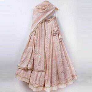 This pink lehenga with Chikankari work on georgette, paired with heavy dupatta is not only beautiful but, elegant, and grace enhancer. An occasion perfect outfit. If anyone gotta search for a function outfit, the Chikankari work outfit is the best.